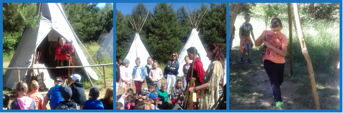 06.06.2018 dwie klasy - IIIC i IIID wybrały się na wycieczkę do wioski indiańskiej w Łopuchówku. Dzieci miały okazję poznać kulturę Indian: zabawy, zwyczaje, przedmioty użytkowe wykorzystywane przez Indian. Zabawy ruchowe, sprawnościowe, pieczenie kiełbasek na ognisku, a także zakup różnych pamiątek, przede wszystkim łuków, sprawiły dzieciom dużo radości.